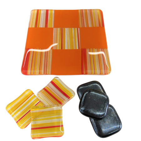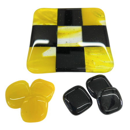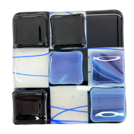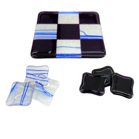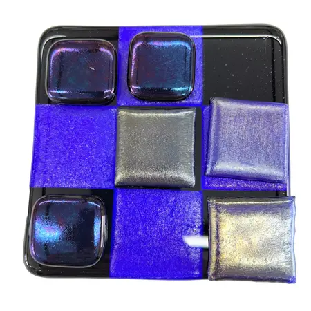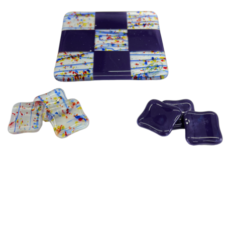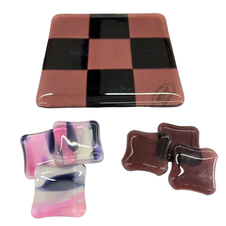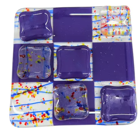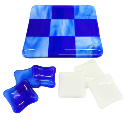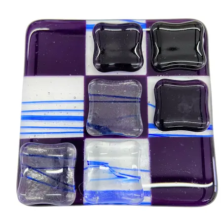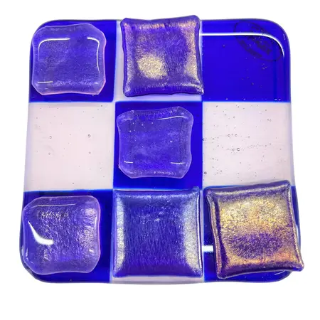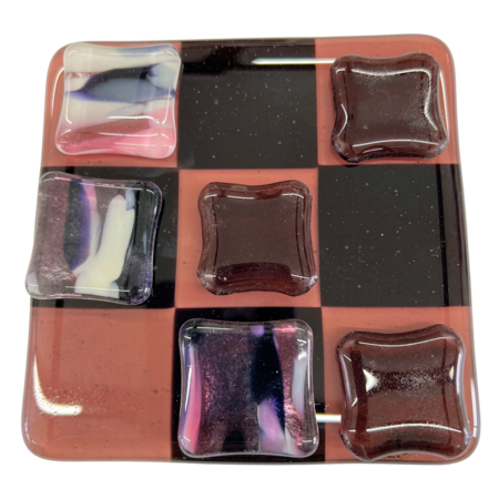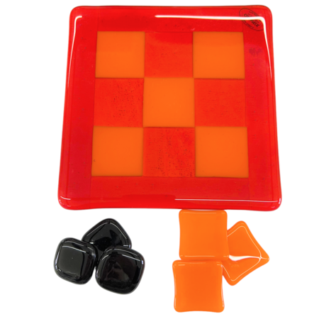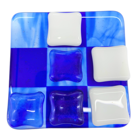 Unikke håndlavede ”3 på stribe” spil lavet i glas i mange flotte farver. Matcher flere af mine andre glas produkter.