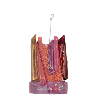 Hvert ophæng er hel unikt og skåret til før det bliver slumpet i en glasovn. Processen tager 19 timer i glasovnen efter udskæring af glasset. Det er altid spændende at åbne ovnen efterfølgende og se, hvordan ophængene hver for sig har formet sig. Derfor er der aldrig 2 ens.